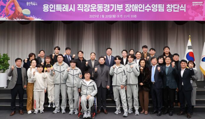 용인특례시(시장 이상일)는 20일 시 직장경기부 소속으로 장애인 수영팀을 창단하고, 대한장애인수영연맹과 장애인수영 발전을 위한 협약을 맺었다.
